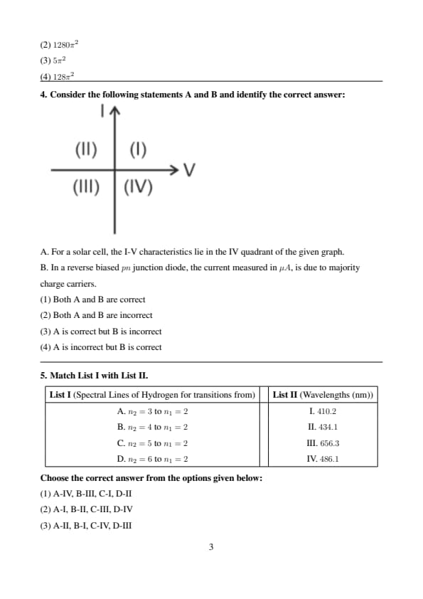• A. For a solar-cell, the I-V characteristics lie in the IV quadrant of the given graph.