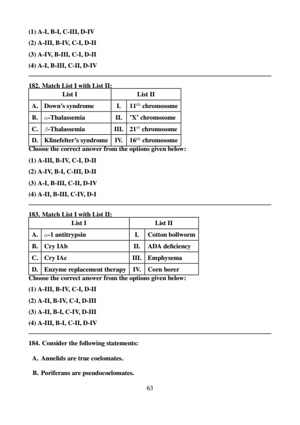 | D. Klinefelter's syndrome | IV. 16th chromosome |