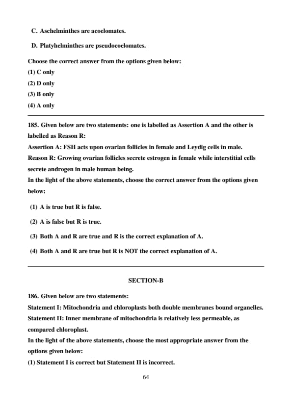Statement II: Inner membrane of mitochondria is relatively less permeable, as compared to chloroplast.