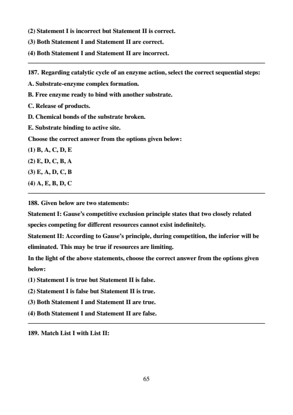 Statement II: According to Gause's principle, during competition, the inferior will be eliminated. This may be true if resources are limiting.