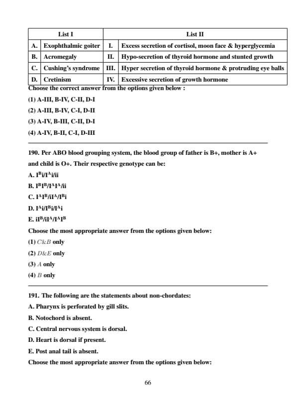 | C. Cushing's syndrome | III. Hyper secretion of thyroid hormone & protruding eye balls. |