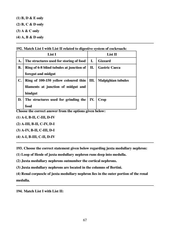 | C. Ring of 100-150 yellow-colored thin filaments at the junction of midgut and hindgut | III. Malpighian tubules |