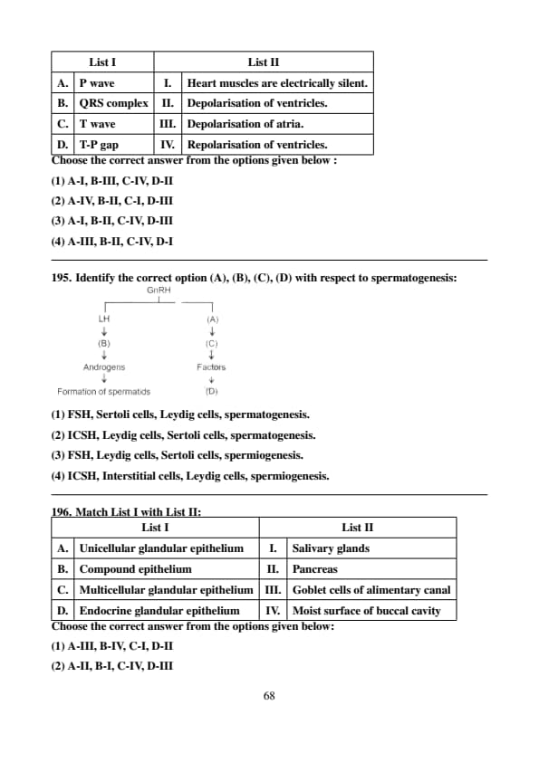 Identify the correct option (A), (B), (C), (D) with respect to spermatogenesis.