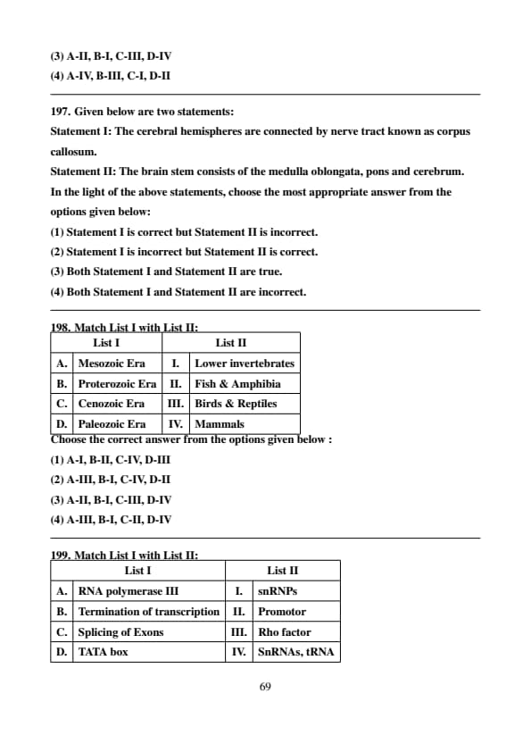 Statement II: The brain stem consists of the medulla oblongata, pons, and cerebrum.