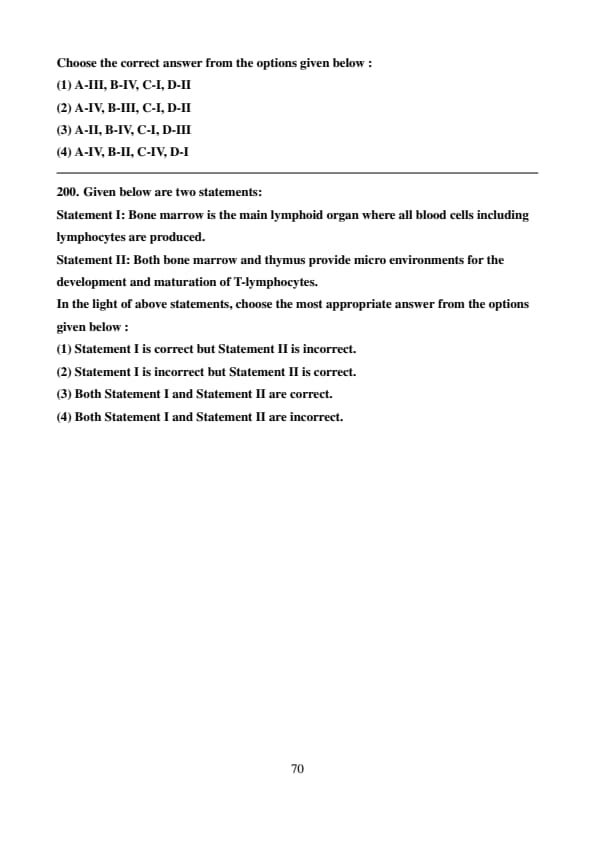 Statement I: Bone marrow is the main lymphoid organ where all blood cells, including lymphocytes, are produced.