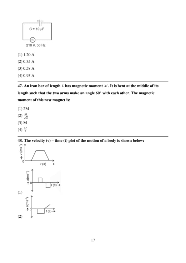 An iron bar of length \( L \) has magnetic moment \( M \). It is bent at the middle of its length such that the two arms make an angle 60° with each other. The magnetic moment of this new magnet is: