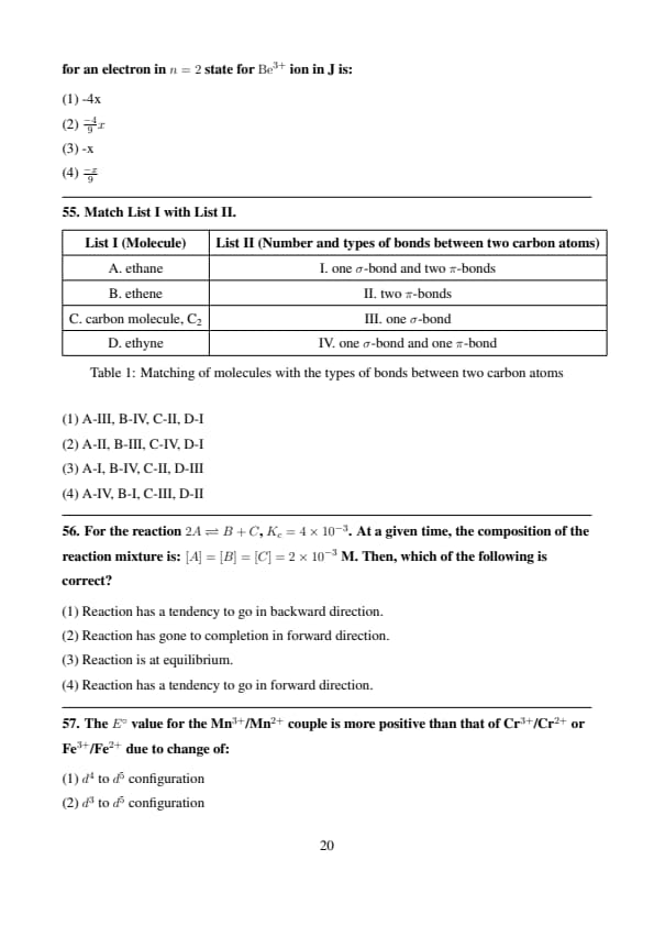 The energy of an electron in the ground state (\(n = 1\)) for \(\mathrm{He^+}\) ion is \(-x\) J, then that for an electron in \(n = 2\) state for \(\mathrm{Be^{3+}}\) ion in J is: