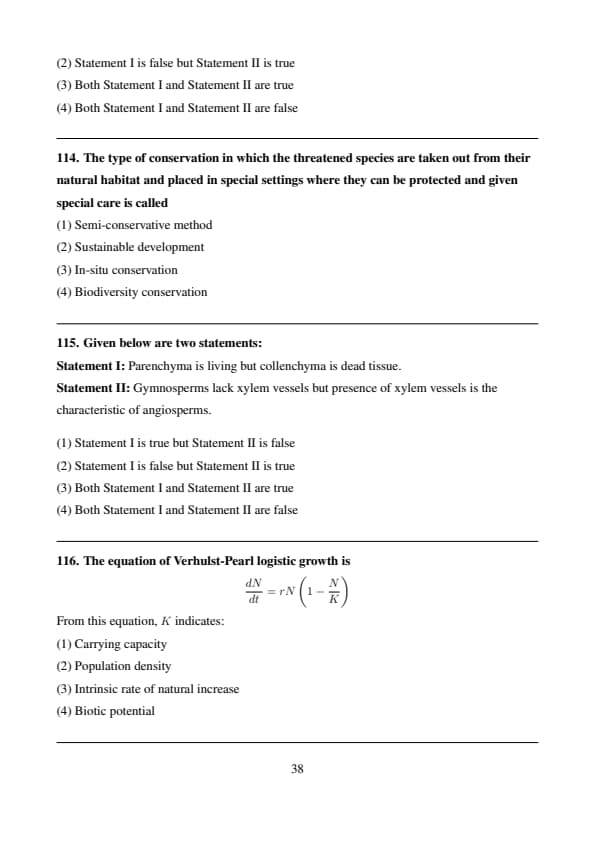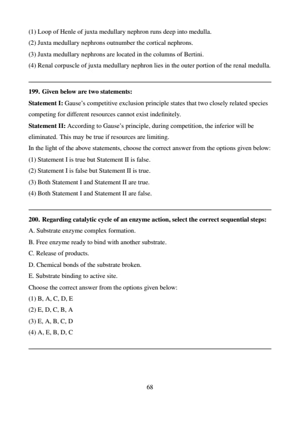 Statement I: Gause's competitive exclusion principle states that two closely related species competing for different resources cannot exist indefinitely.