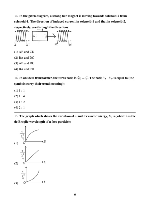 The graph which shows the variation of \( \lambda \) and its kinetic energy, \( E \), is (where \( \lambda \) is the de Broglie wavelength of a free particle):