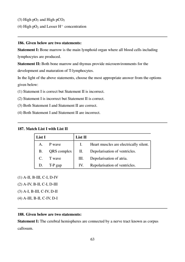 Statement I: Bone marrow is the main lymphoid organ where all blood cells including lymphocytes are produced.