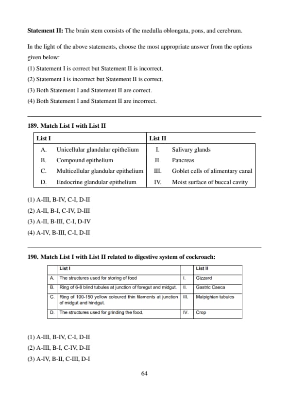 Statement II: The brain stem consists of the medulla oblongata, pons, and cerebrum.