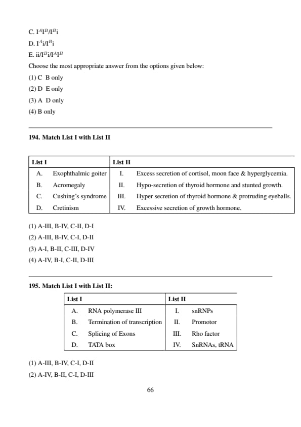 C. & Cushing’s syndrome & III. & Hyper secretion of thyroid hormone \& protruding eyeballs.