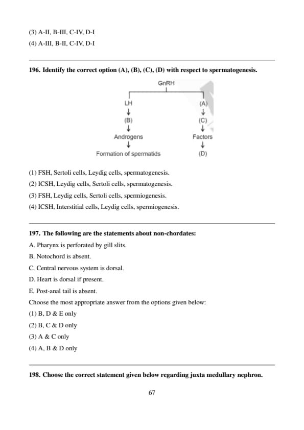 Identify the correct option (A), (B), (C), (D) with respect to spermatogenesis.