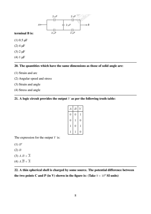 In the following circuit, the equivalent capacitance between terminal A and terminal B is: