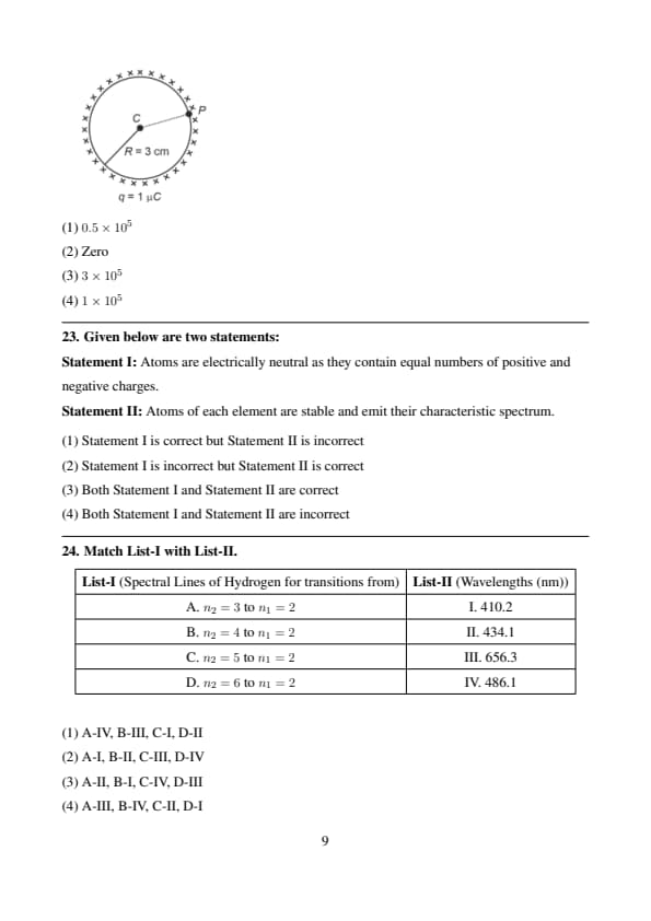Statement I: Atoms are electrically neutral as they contain equal numbers of positive and negative charges.