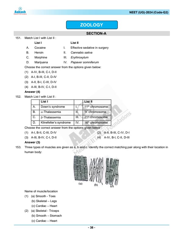NEET 2024 Zoology Question Paper with Solutions PDF Q2 is available for download. NEET 2024 Q2 Zoology Question Paper comprises 50 MCQs out of which only 45 are to be attempted. NEET 2024 question Q2 Zoology is divided into 2 sections- A (35 questions) and B (15 questions). You can download NEET 2024 zoology question paper with answer key and solutions PDF for Q2 using the links given below.
