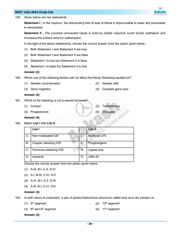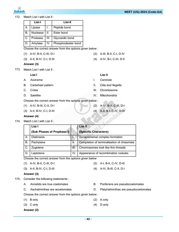 NEET 2024 Zoology Question Paper with Solutions PDF Q4