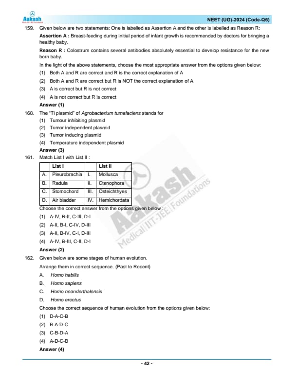 NEET 2024 Zoology Question Paper with Solutions PDF Q6