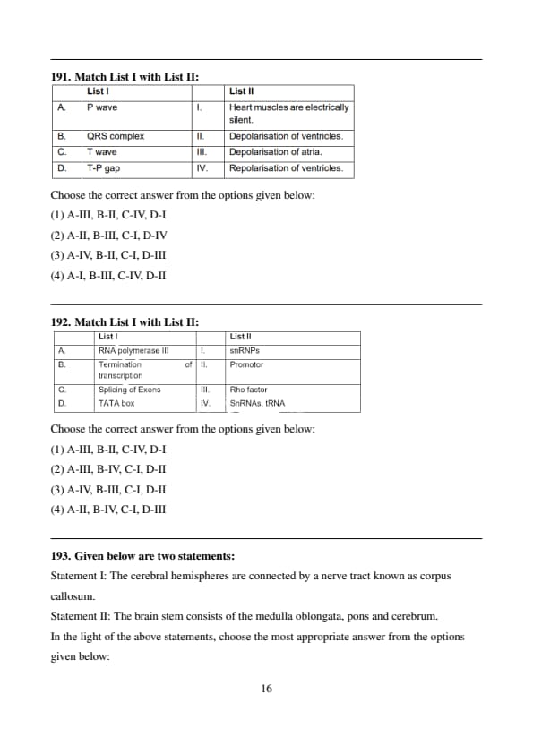 Thus, the correct answer is (1) A-III, B-II, C-IV, D-I. Quick Tip: Understanding the P wave, QRS complex, and T wave is crucial for interpreting the electrical activity of the heart.