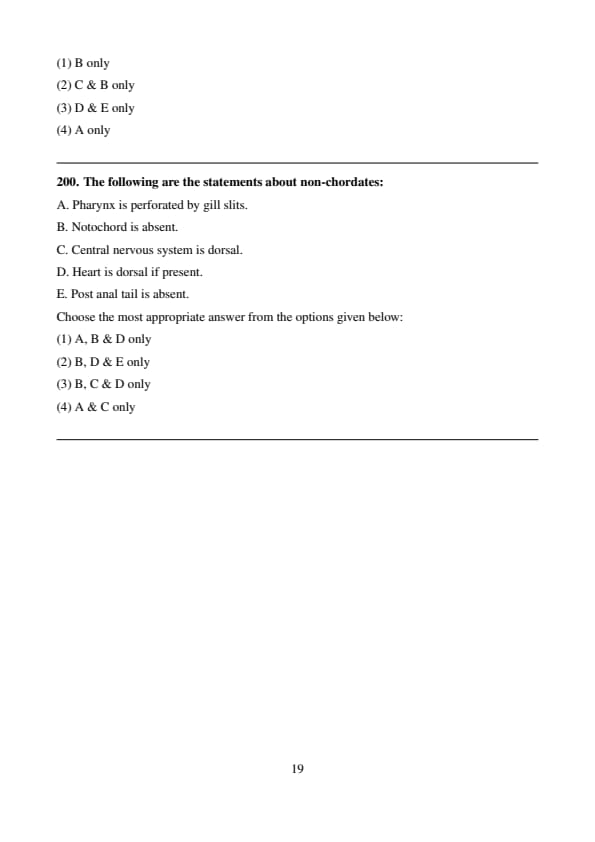 (2) B, D \& E only. Quick Tip: Non-chordates lack a notochord, have a dorsal nervous system, and may have a dorsal heart.