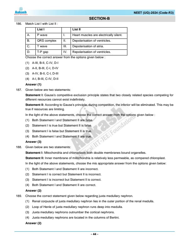 | NEET 2024 R3 Question Paper with Answer Key | Download PDF | Check Solution |