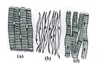 Three types of muscles are given as a, b and c. Identify the correct matching pair along with their location in human body: