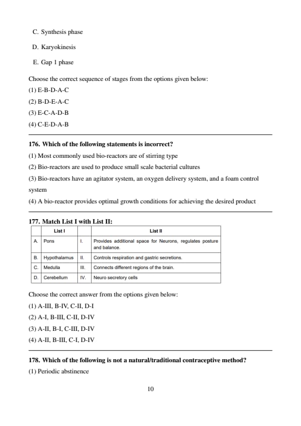Conclusion: The correct answer is (4) E, A, D, C, B. Quick Tip: The enzyme catalytic cycle follows a defined sequence: binding of the substrate, enzyme-substrate complex formation, breakdown of chemical bonds, product release, and enzyme recycling for the next reaction.