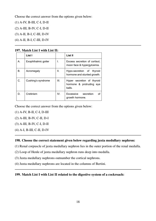 Step 2: Matching the correct pairs \[ \begin{aligned} A & \rightarrow III \quad (Hyper-secretion of thyroid hormone \& protruding eyeballs)
