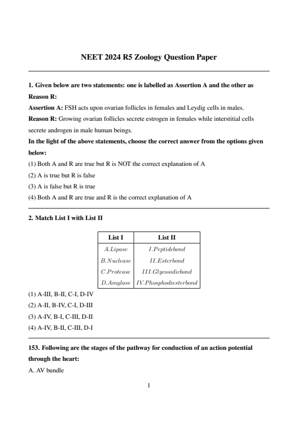 | NEET 2024 Zoology Question Paper R5 | Download PDF | Check Solution |