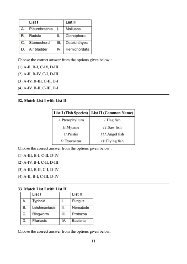 Step 2: Matching the Correct Pairs \[ \begin{aligned} A & \rightarrow III \quad (Birds \& Reptiles)