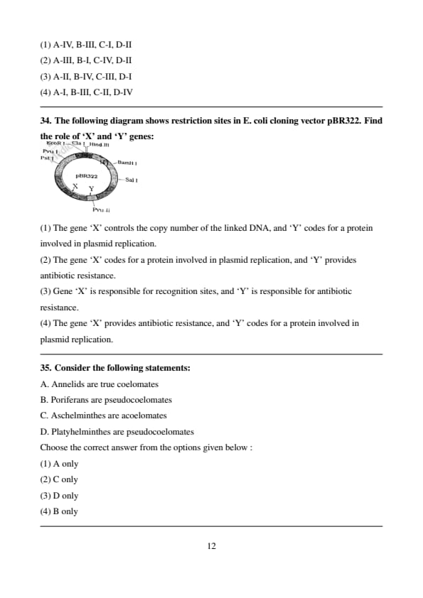 (2) A-II, B-I, C-IV, D-III