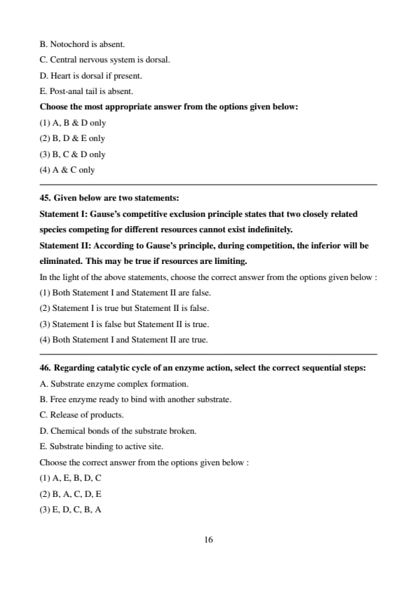 Conclusion: The correct sequence is E → A → D → C → B, option (4). Quick Tip: \textbf{Enzymes work by lowering the activation energy of a reaction and remain unchanged after the process.}