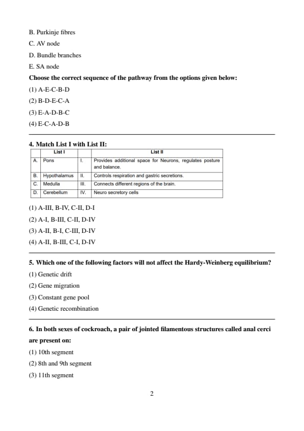 Conclusion: The correct option is \( \mathbf{(1)} \). Quick Tip: \textbf{The cerebellum is essential for motor coordination, while the medulla controls vital autonomic functions.}