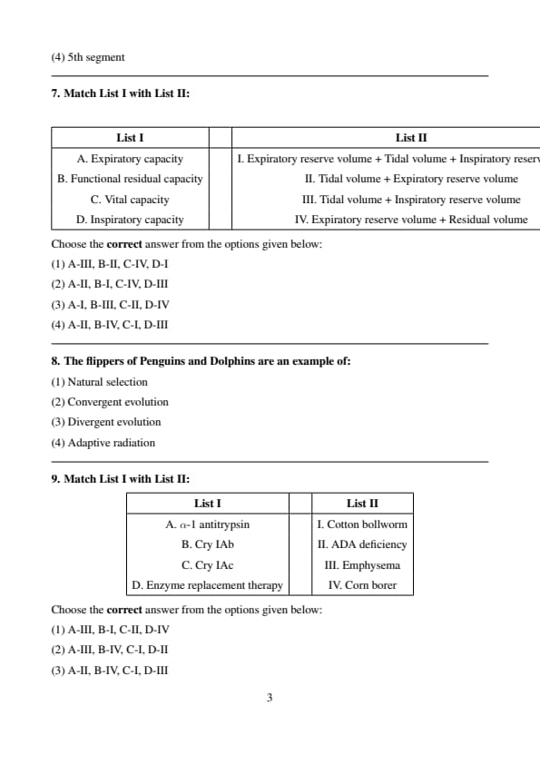 Step 2: Matching the correct pairs \[ \begin{aligned} A & \rightarrow II \quad (Tidal volume + Expiratory reserve volume)