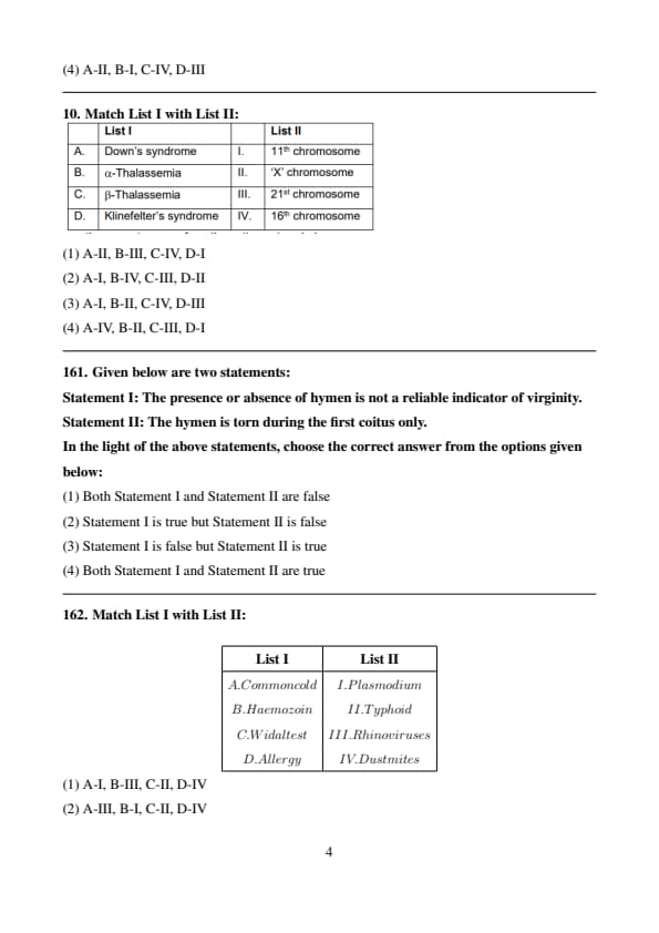 (4) A-II, B-IV, C-I, D-III