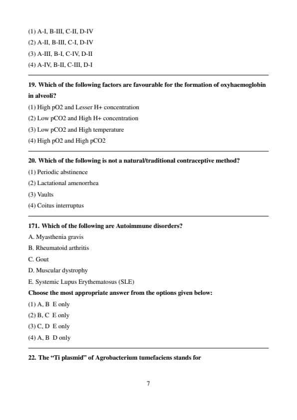 (4) A-II, B-III, C-I, D-IV