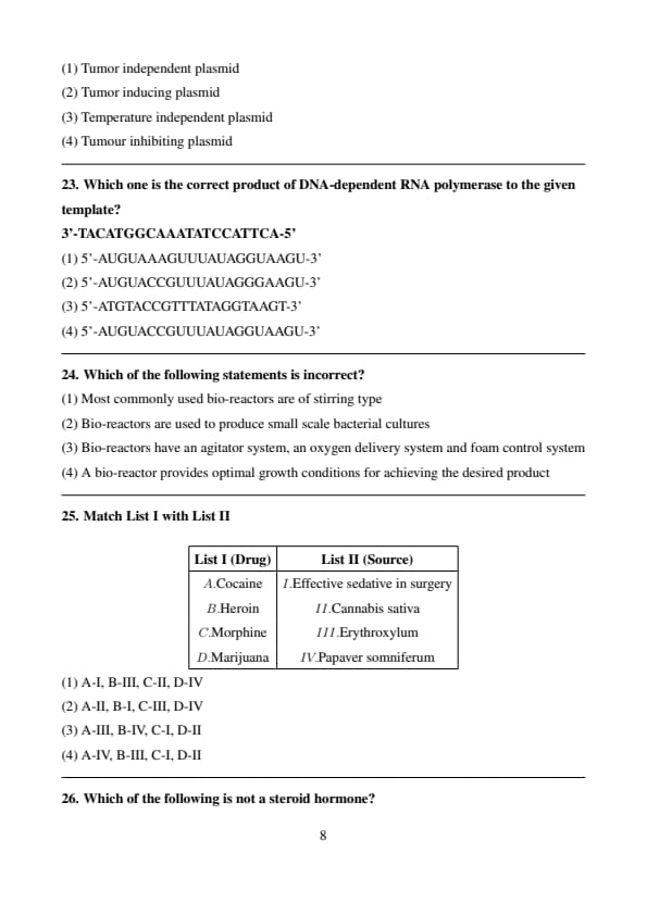 (2) A-III, B-IV, C-II, D-I