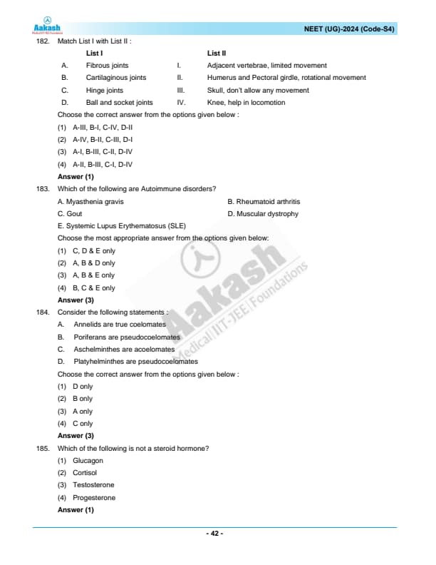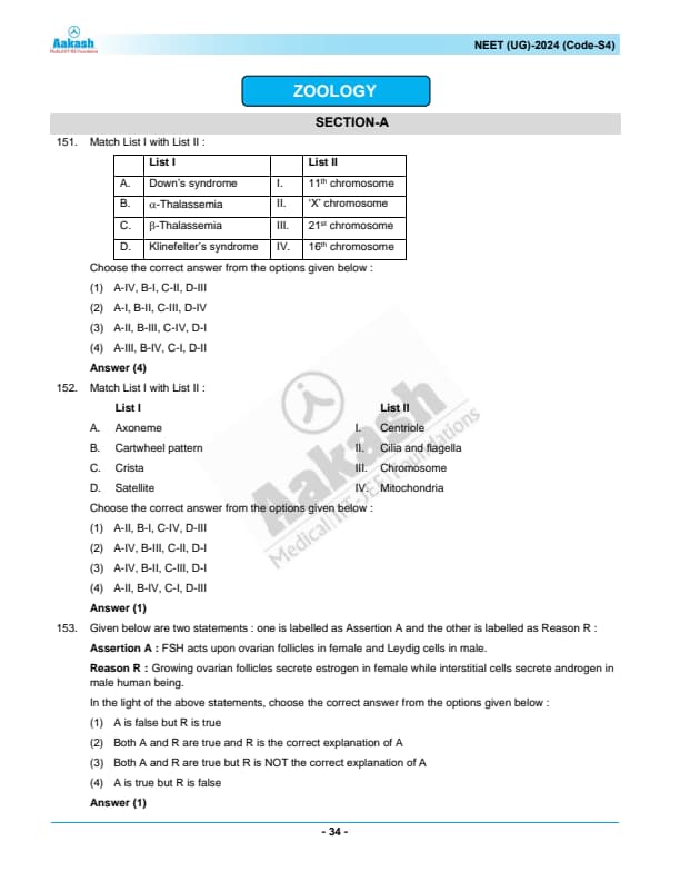 | NEET 2024 Zoology Question Paper S4 | Download PDF | Check Solution |