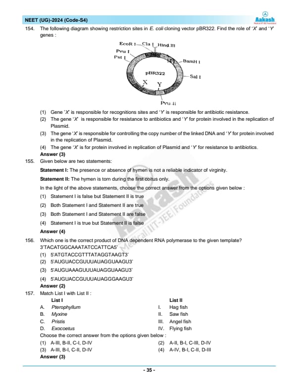 The following diagram showing restriction sites in E. coli cloning vector pBR322. Find the role of 'X' and 'Y' genes: (Diagram not provided)