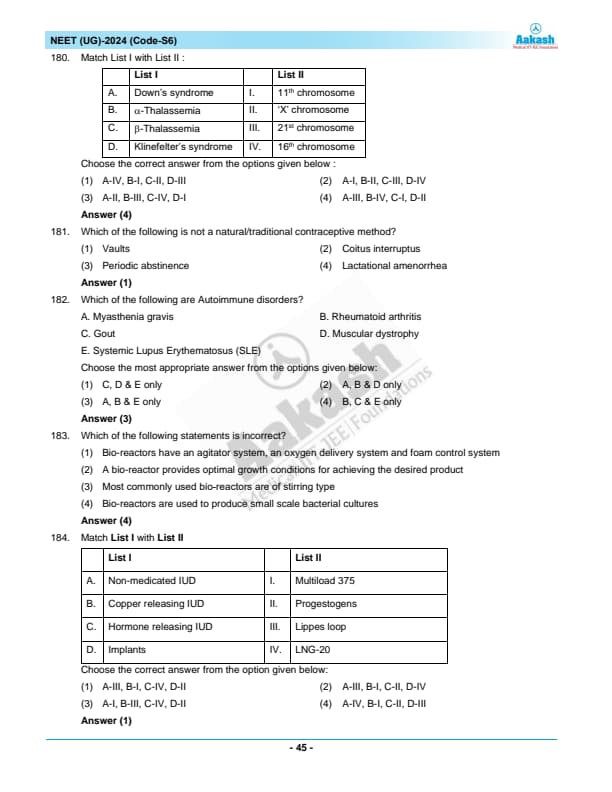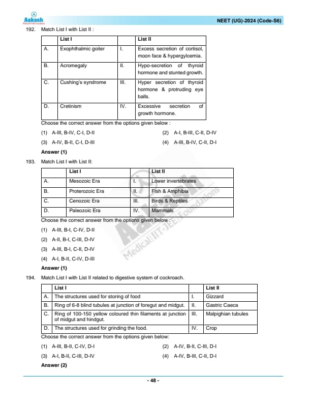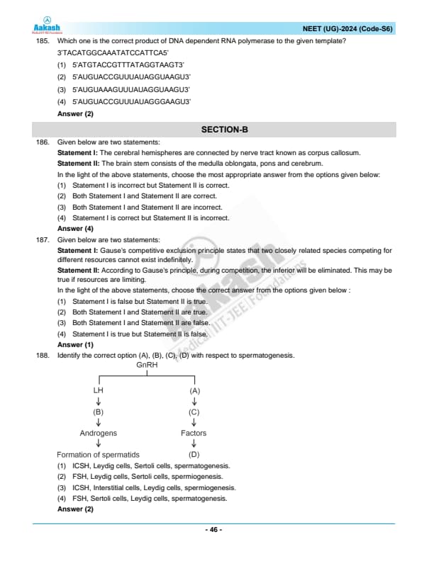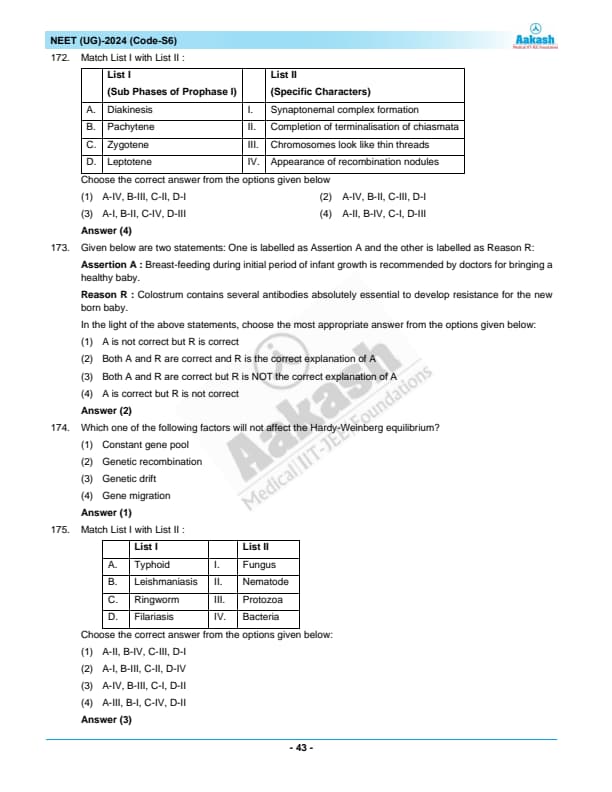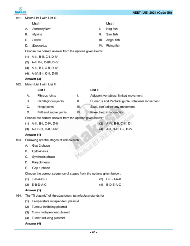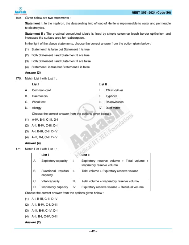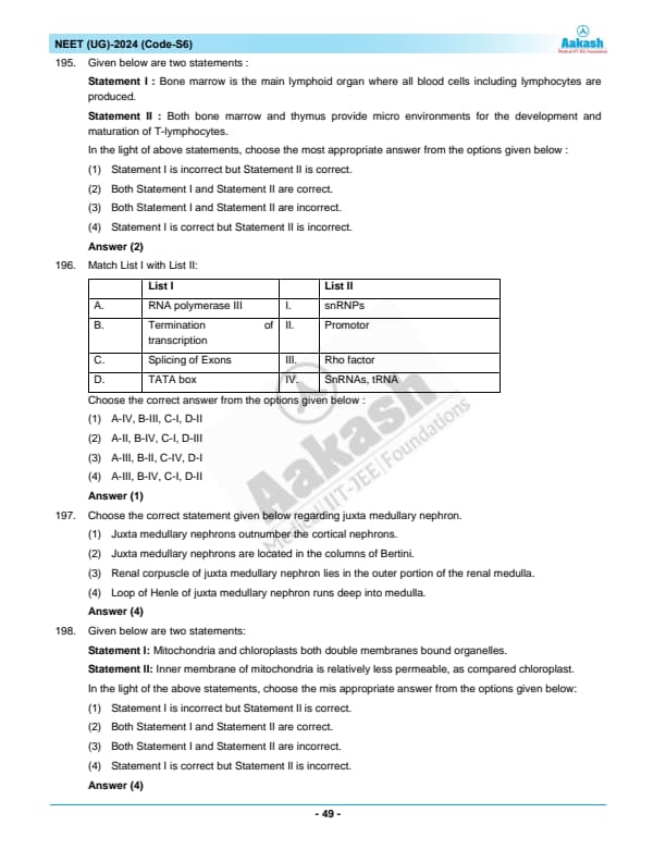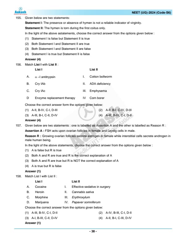 | NEET 2024 S6 Question Paper with Answer Key | Download PDF | Check Solution |