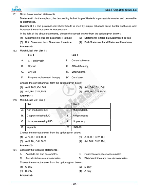 NEET 2024 Zoology Question Paper with Solutions PDF T4