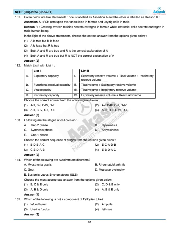 | NEET 2024 T2 Question Paper with Answer Key | Download PDF | Check Solution |