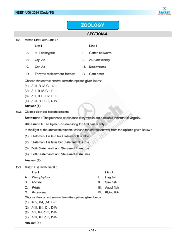 NEET 2024 Zoology Question Paper with Solutions PDF T6