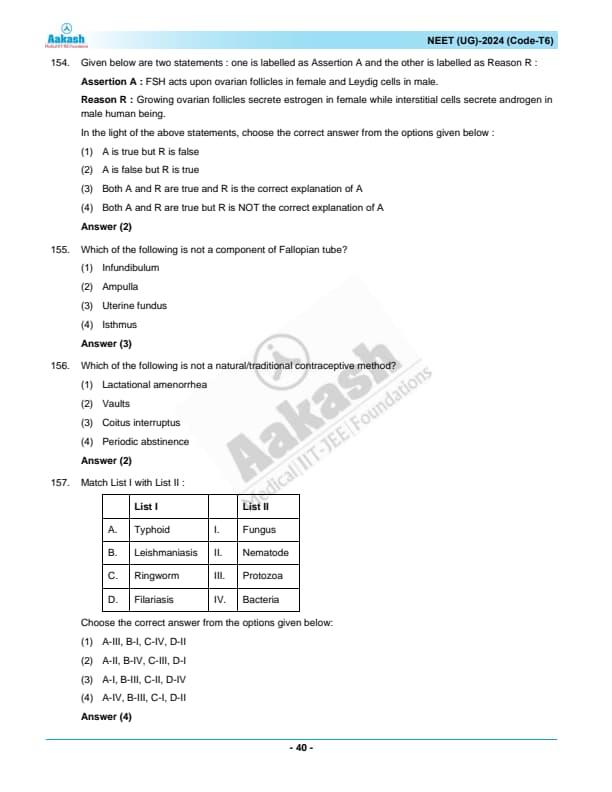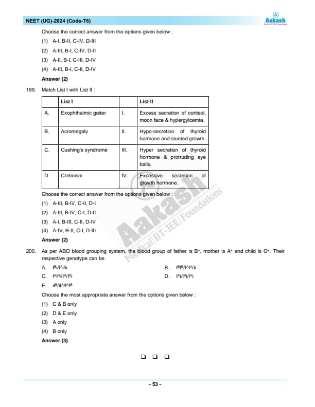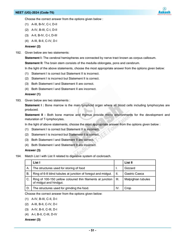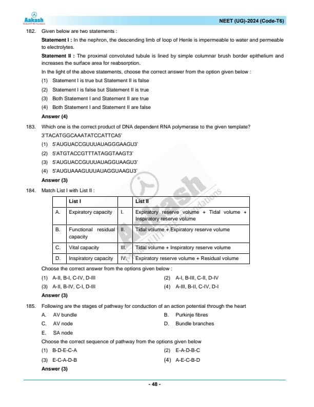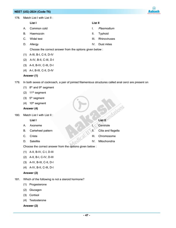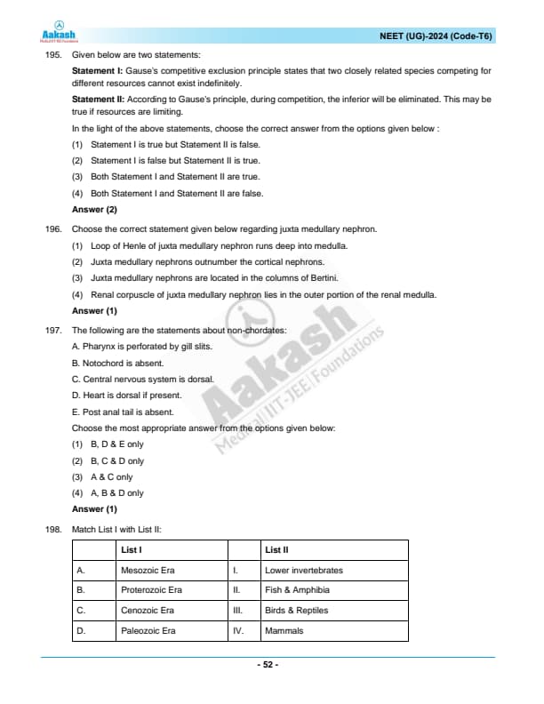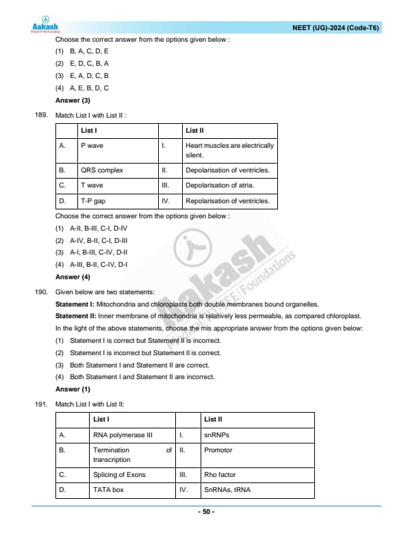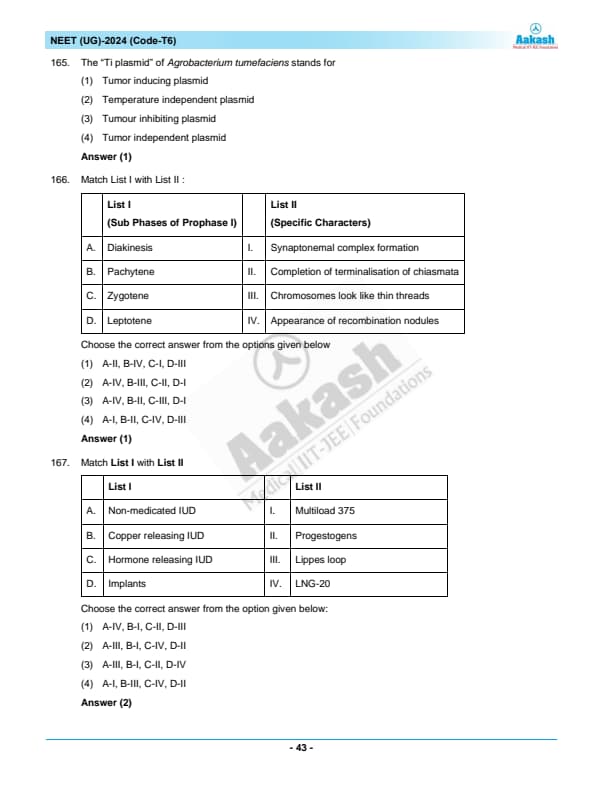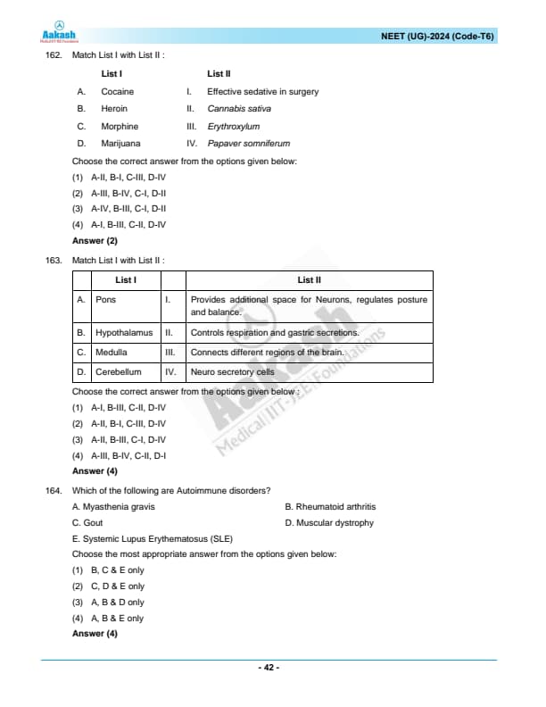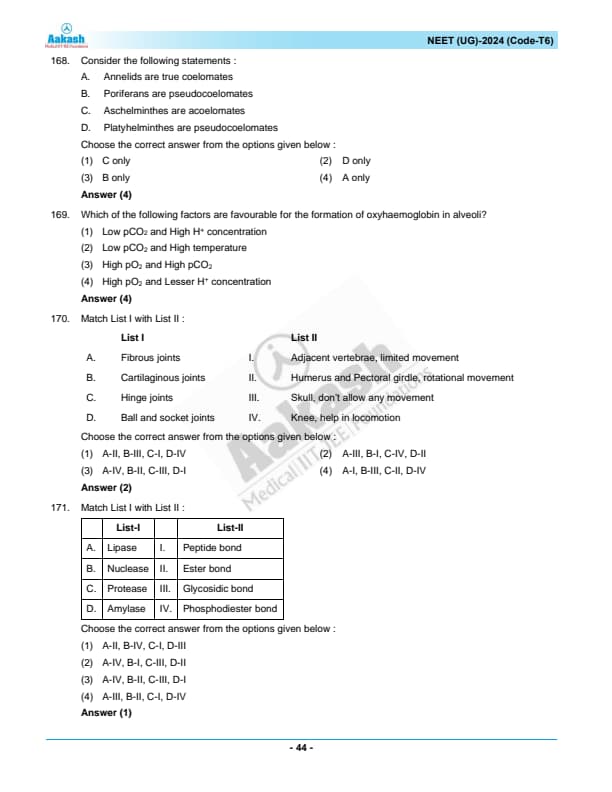 | NEET 2024 T6 Question Paper with Answer Key | Download PDF | Check Solution |