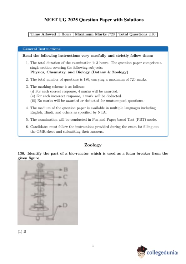 | NEET 2025 Zoology Question Paper with Answer Key | Download PDF | Check Solution |