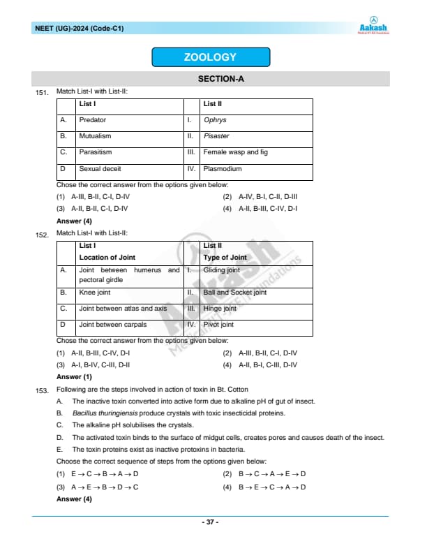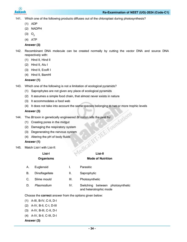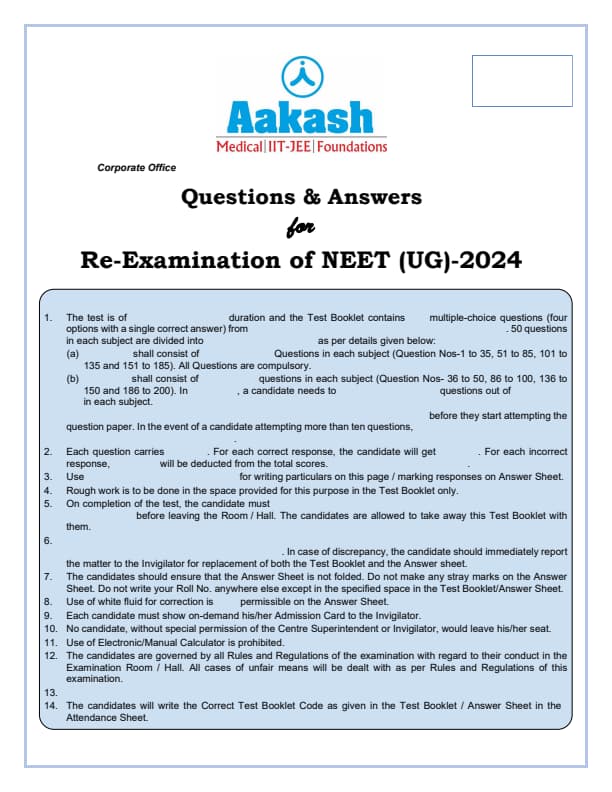 NEET Re-Exam 2024 Question Paper with Answer Key PDF
