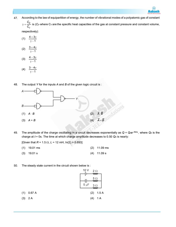 According to the law of equipartition of energy, the number of vibrational modes of a polyatomic gas of constant \( \gamma = \frac{C_p}{C_v} \) is (where \( C_p \) and \( C_v \) are the specific heat capacities of the gas at constant pressure and constant volume, respectively):
