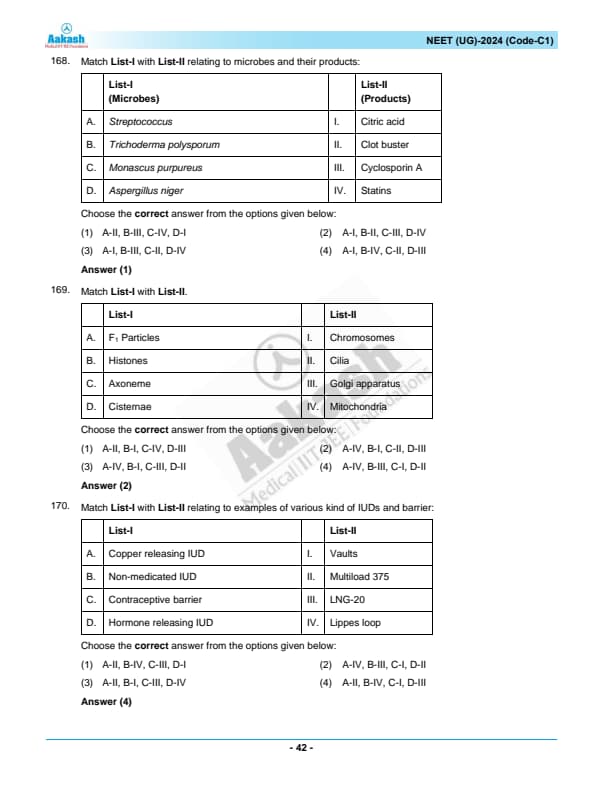 List - I List - II