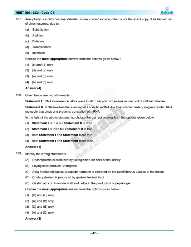 NEET Re-Exam 2024 Questions with Solutions