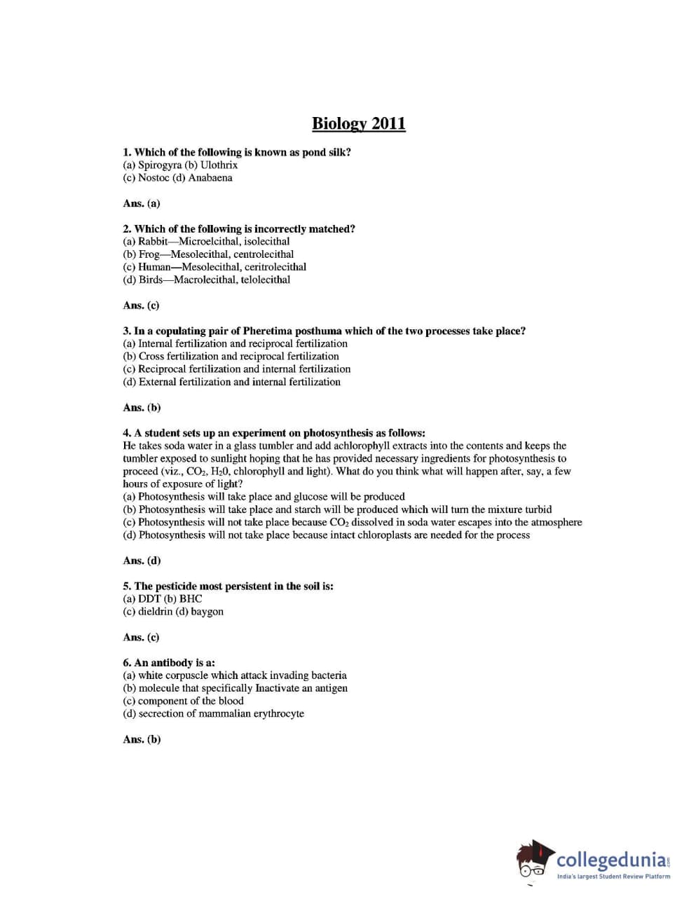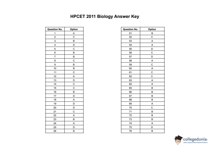 | HPCET 2011 Biology Question Paper PDF | HPCET 2011 Biology Answer Key PDF |